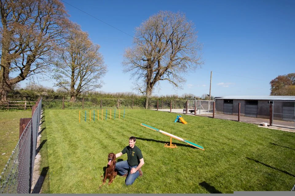 We have 6 securely fenced play runs, a large grass play area and an indoor play area, so your dog can run free, off lead and play games with balls /frisbees etc. every day. All dogs are exercised individually (unless they are from the same household).
